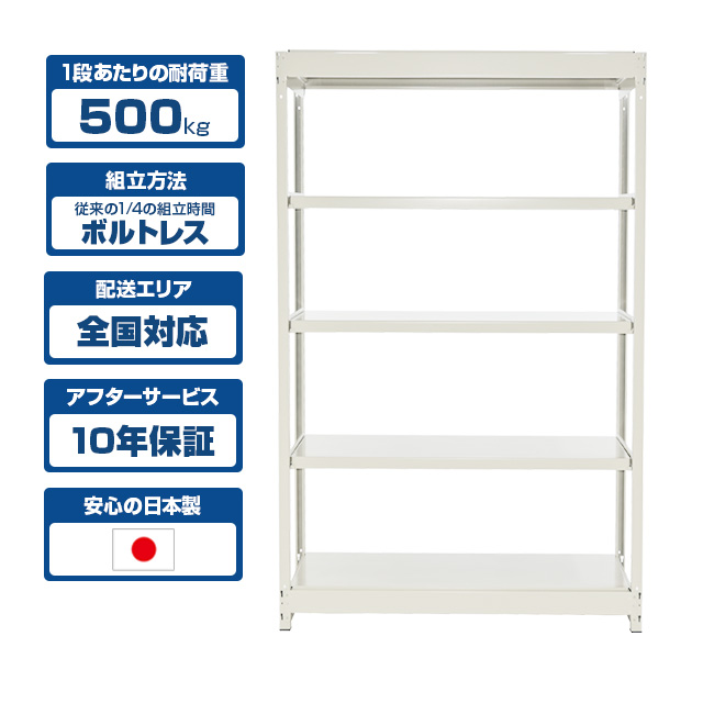 スチールラック YSシリーズ 耐荷重500kg/段 ホワイトグレー 高さ1200×横幅1250×奥行600×4段(枚) 単体形式