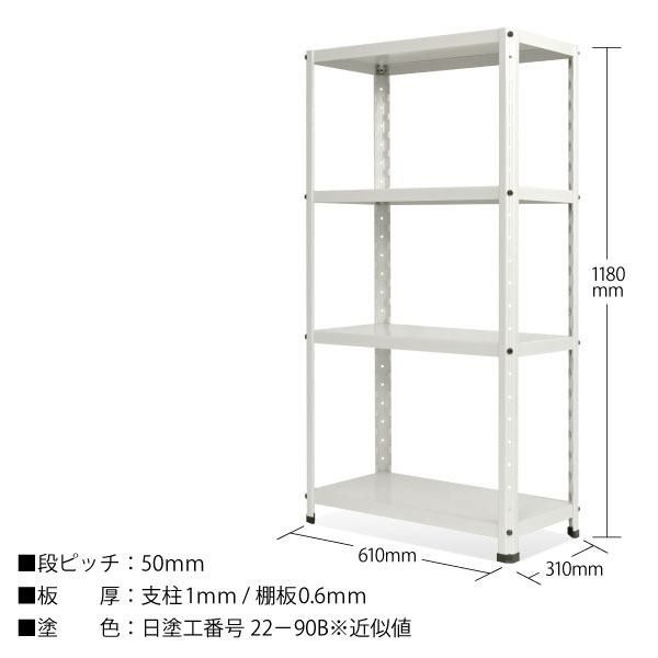 小型ラックシリーズ「シュット・ラック」ホワイト 4段 H1180×W610×D310