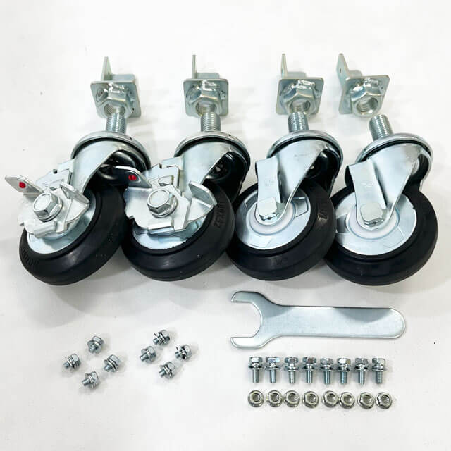 | キャスター部材 | キャスター4個 ※ストッパー有り無し それぞれ2個ずつ キャスター固定用ボルト ロックピン交換用ビス 取付説明書 |